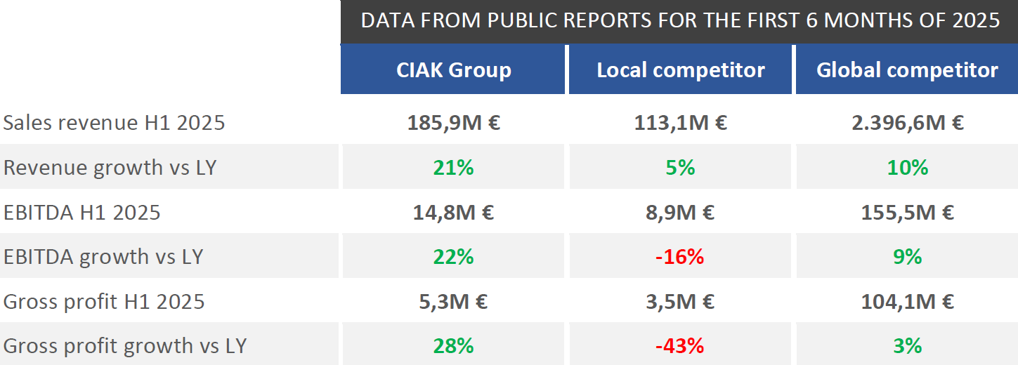 CIAK Group is known for over 30 years of continuous growth since its establishment and for sustained profitable operations. During 2020, CIAK Group consolidated all of its business entities and real estate into a single organisational unit and, as such, was the first in our region and industry to successfully complete an Initial Public Offering (IPO), becoming the regional leader in the independent aftermarket (spare parts) segment. Since the listing on the Zagreb Stock Exchange on 4 January 2021, CIAK Group has grown from 1,300 employees and €128M in revenues to over 3,400 employees and more than €359M in revenues. The company’s share value has increased by over 35%, and dividends are regularly paid to shareholders in the amount of approximately 50% of the profit achieved in the previous year. Based on publicly available data for the first half of the year for both CIAK Group and local and global competitors, we firmly believe that CIAK Group will continue to pursue its business mission in the coming years and deliver long-term value to shareholders.